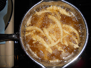 Place onions in a pot of hot oil, I used vegetable oil, and fry until golden brown and crisp.